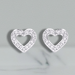 Enchanting ladies diamond heart earrings in polished 18K white gold.