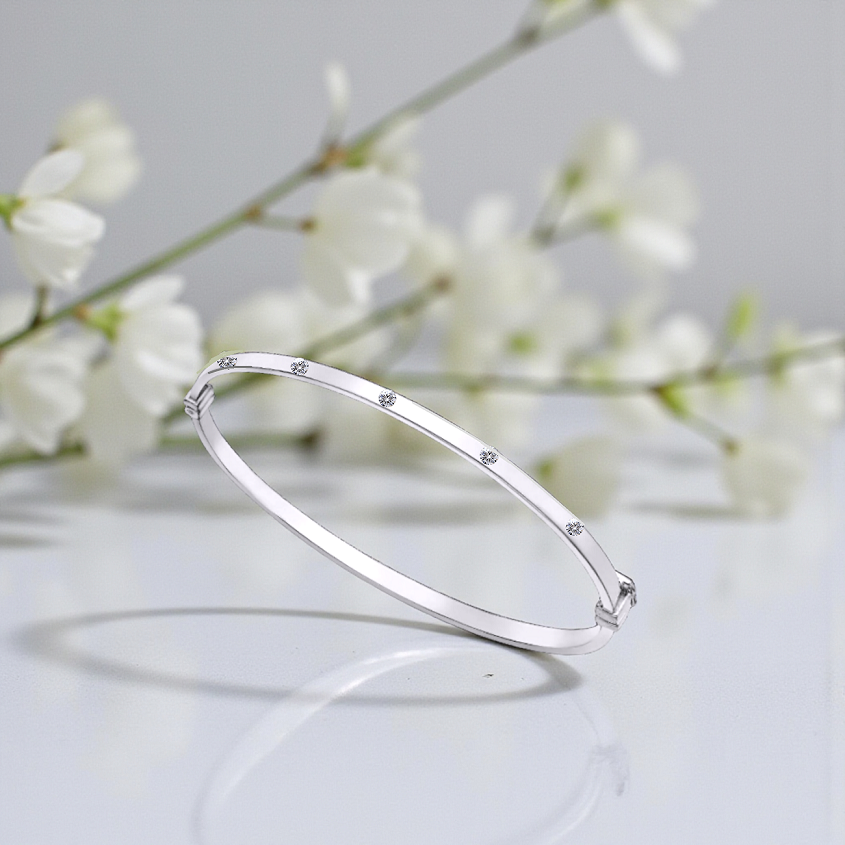 White Gold Five Diamond Hinged Flat Bangle - Options