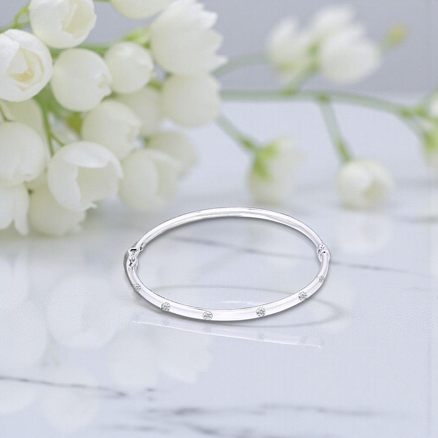 White Gold Studded Diamond Hinged Hollow Bangle - Options